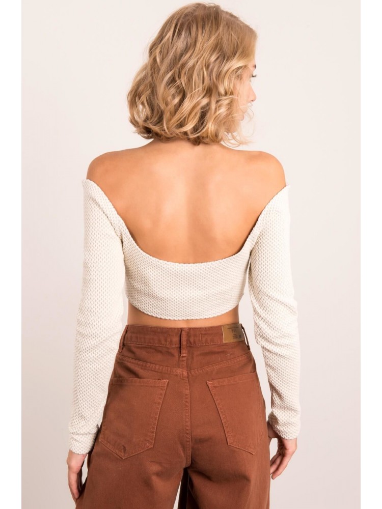 Sexi crop top s dlhým rukávom, ktorý zvýrazňuje ženské telo, je vhodný skôr na malé prsia.